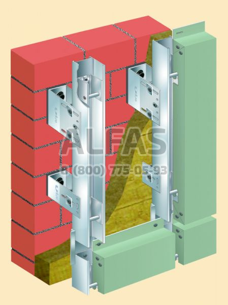 Система предназначена для крепления облицовки элементами кассетного типа, выполненными из композитных материалов.