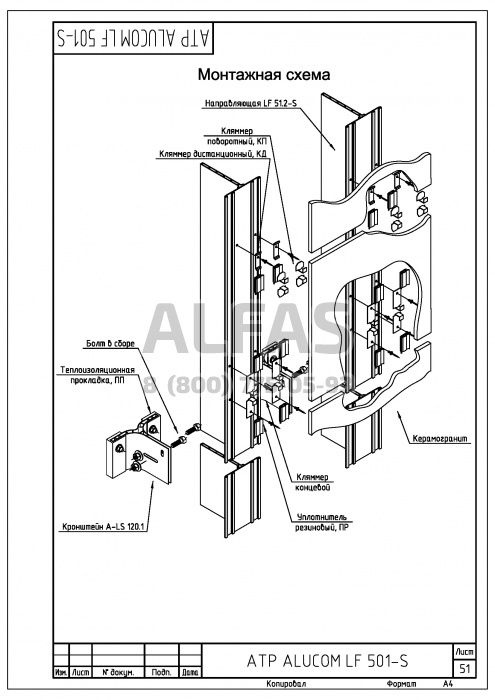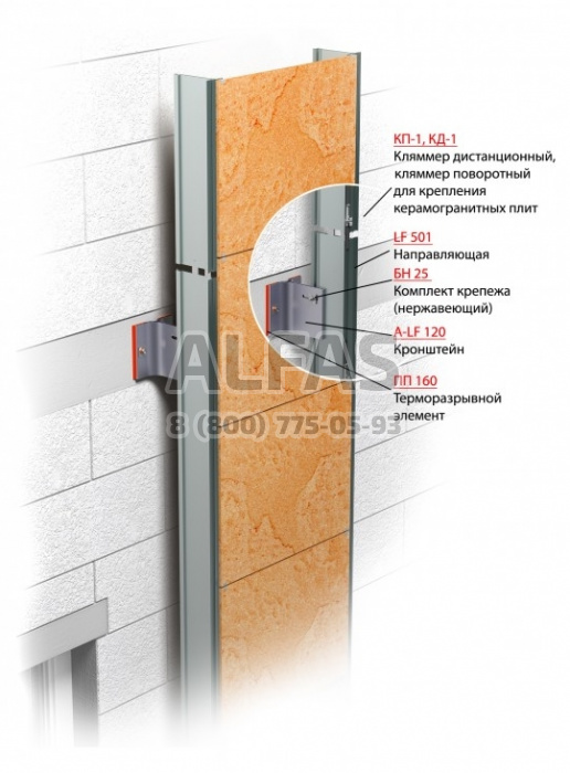 Фасадная система Alucom LF 501-S под Фасадный керамогранит