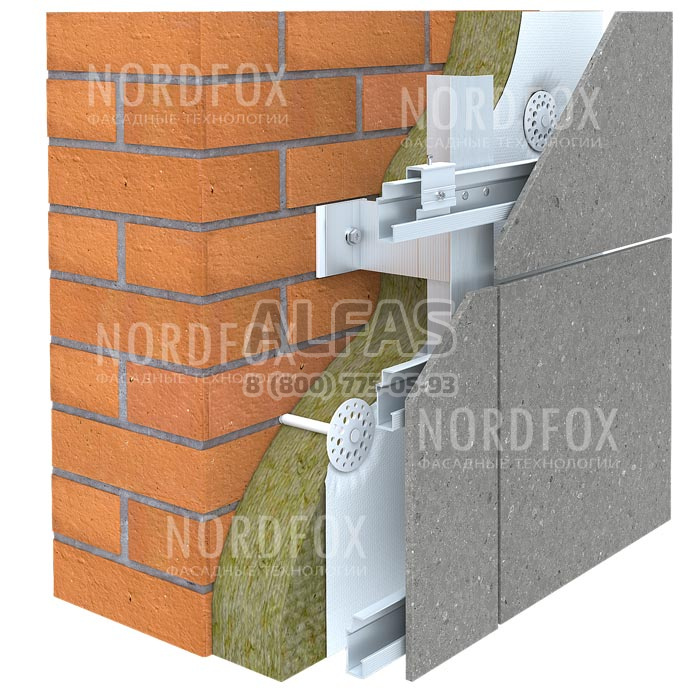 В зависимости от типа облицовки крепление возможно анкерами Keil, саморезами Duro-PT, болтами в готовые закладные элементы облицовки, химическими анкерами (шпильками).